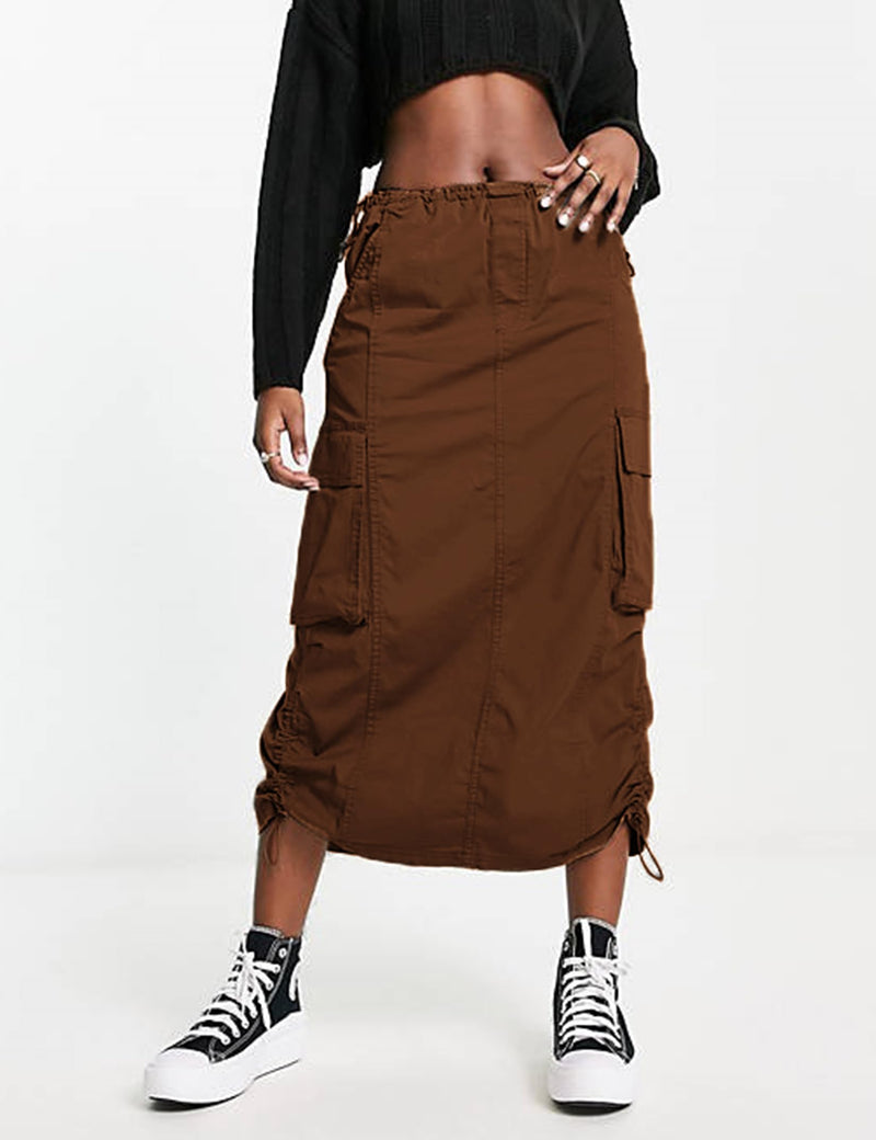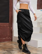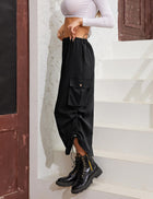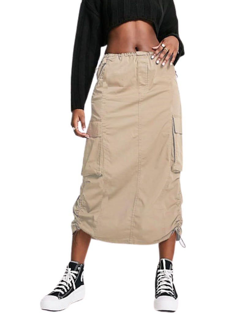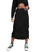 YESFASHION Cargo Midi Skirts for Women Y2K Drawstring Waist Casual Back Split Skirts with Pockets_Black_M-1