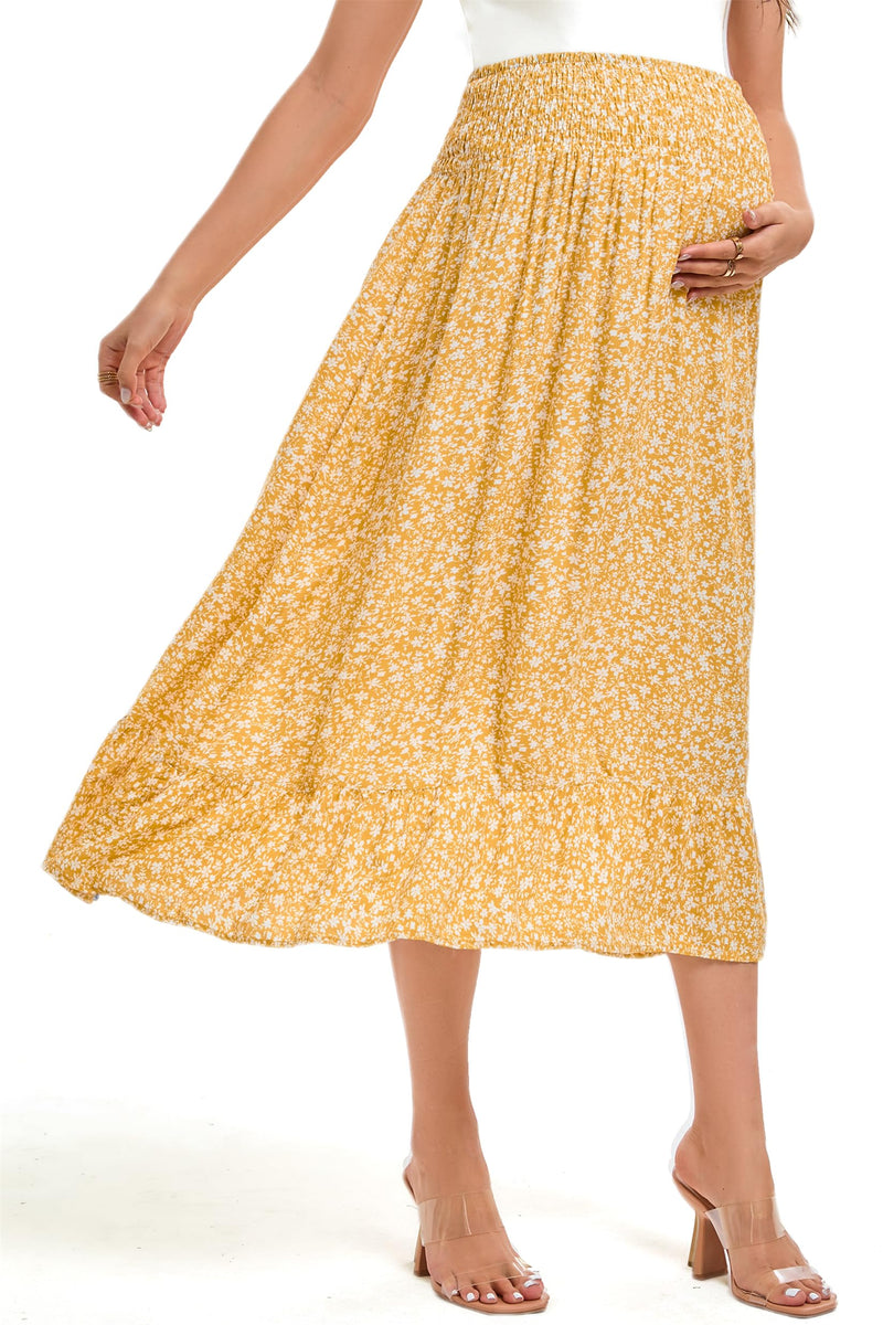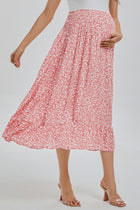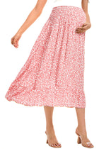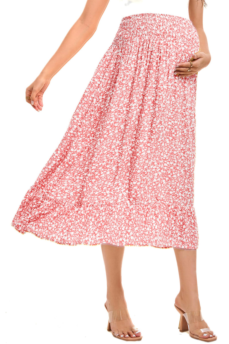 YESFASHION Maternity Dress Women's High Waist Floral Print Pleated Maxi Skirt Casual Flowy Swing A Line Long Skirts Pink-HY-Medium
