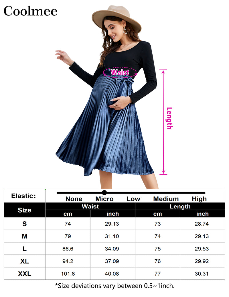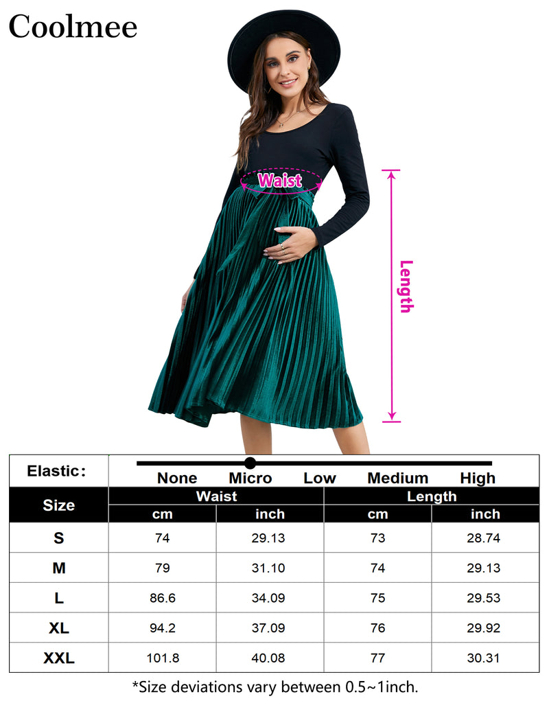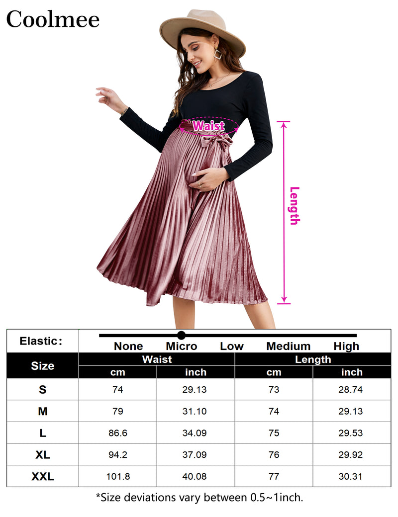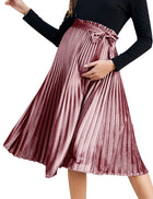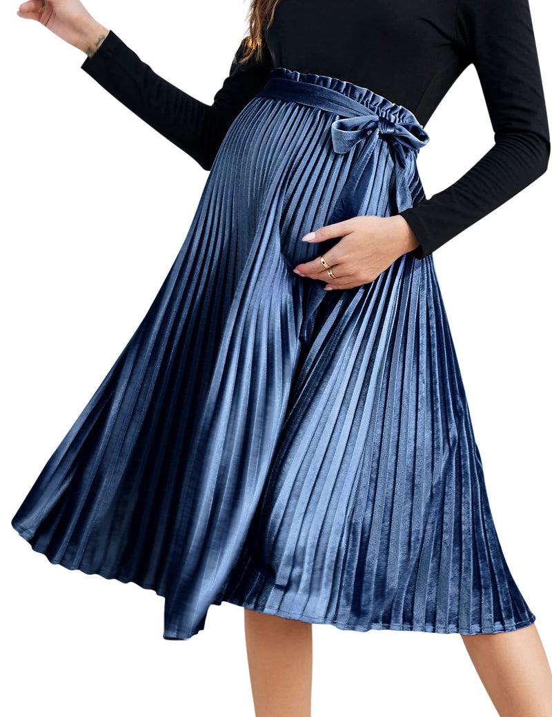 FUNJULY Maternity Skirts Velvet High Elastic Waisted A Line Pleated Ruffle Holiday Skirt