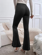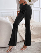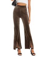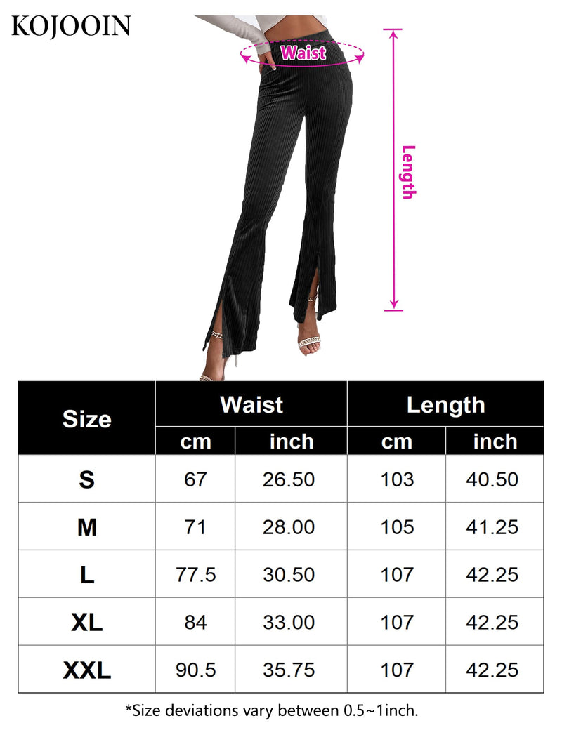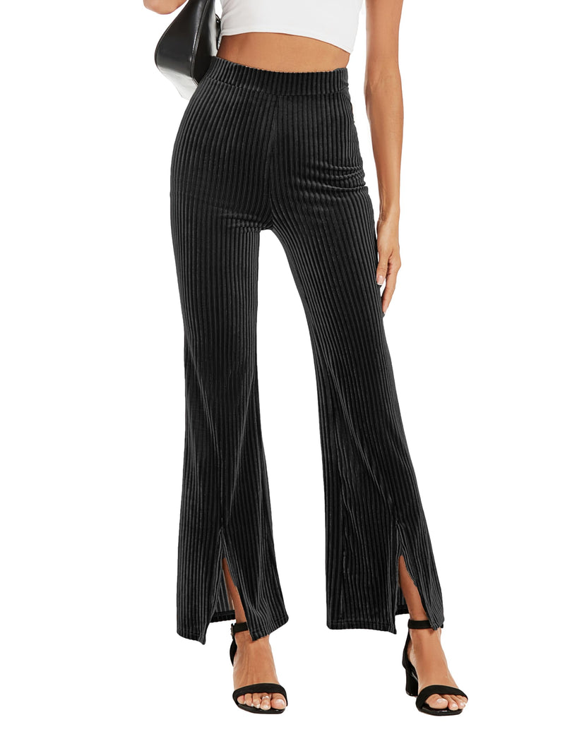 YESFASHION Velvet Corduroy Flared Leggings for Women, High Waist Elastic, Front Slit, Ribbed, Casual Yoga Pants, Black, XL