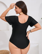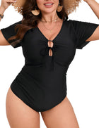 YESFASHION Women Plus Size One Piece Swimsuits Tummy Control Bathing Suits V Neck Ruffle Sleeve Swimwear,XL,Black
