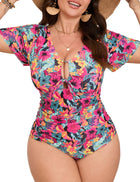 • [BUST Keyhole Design]-Keyhole Design with adjustable bust ties, suitable for beach as well as pool party. Butterfly sleeves are cooler to wear, Ruched details at the waist, U backless design, Totally full coverage at the bottom, stylish print styles and removable bust pads, this swimsuit combines style and versatility. A must-have item for your summer beach.