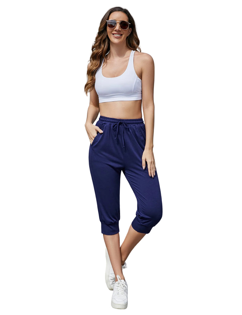 Our capri pant made from lightweight fabric with an elasticated drawstring waistband. Pair with a sport bra or T-shirt for the casual or athletic look! Suitable for jogging, workout,home or other outdoor activities.