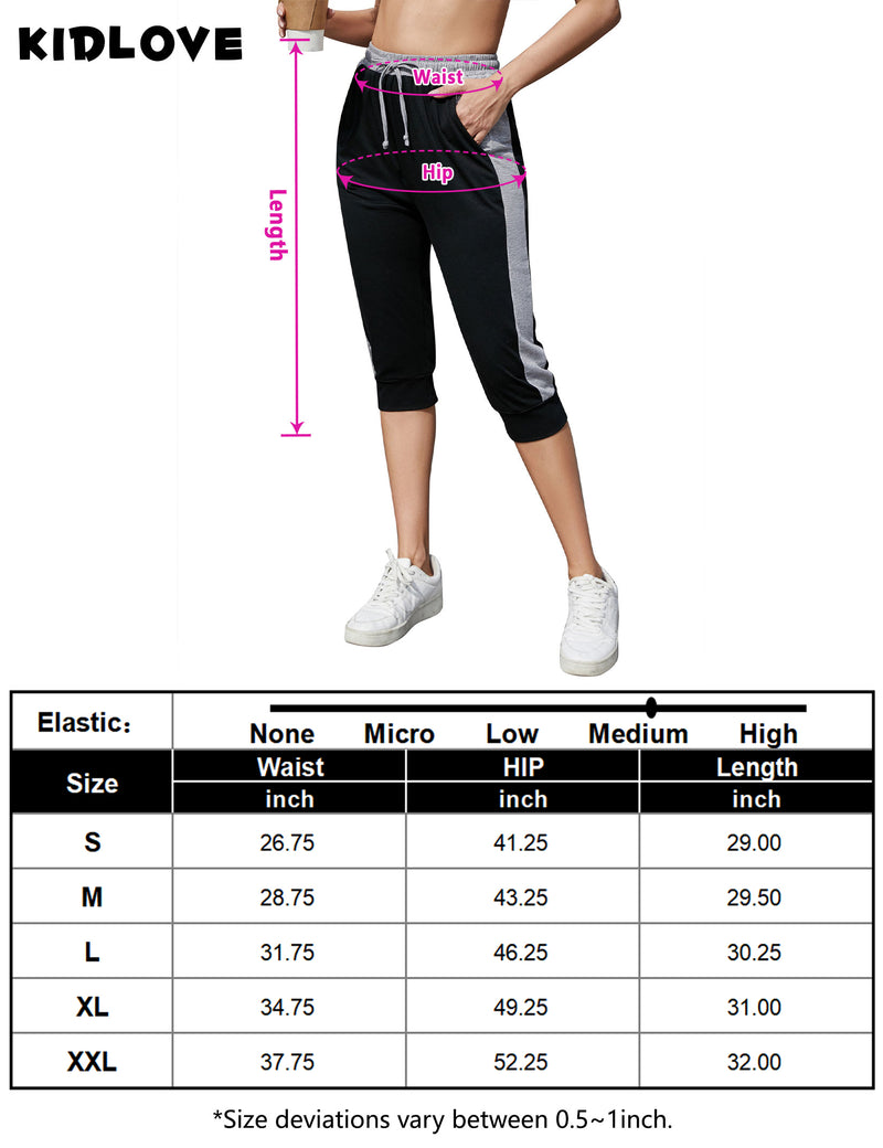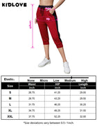 Features:Fabric: 60% Polyester + 35% Rayon, 5% SpandexSide Contrast Colour design, adds to the sense of relaxed fit.Elastic waistband with drawstring cord for an adjustable fitCapri length, loose fit, elastic waist, lightweight,solid color, cropped pants