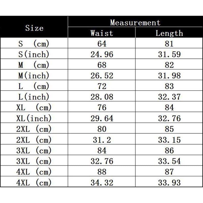 4XL: Waist: 88cm/34.65", Length: 87cm/34.25"