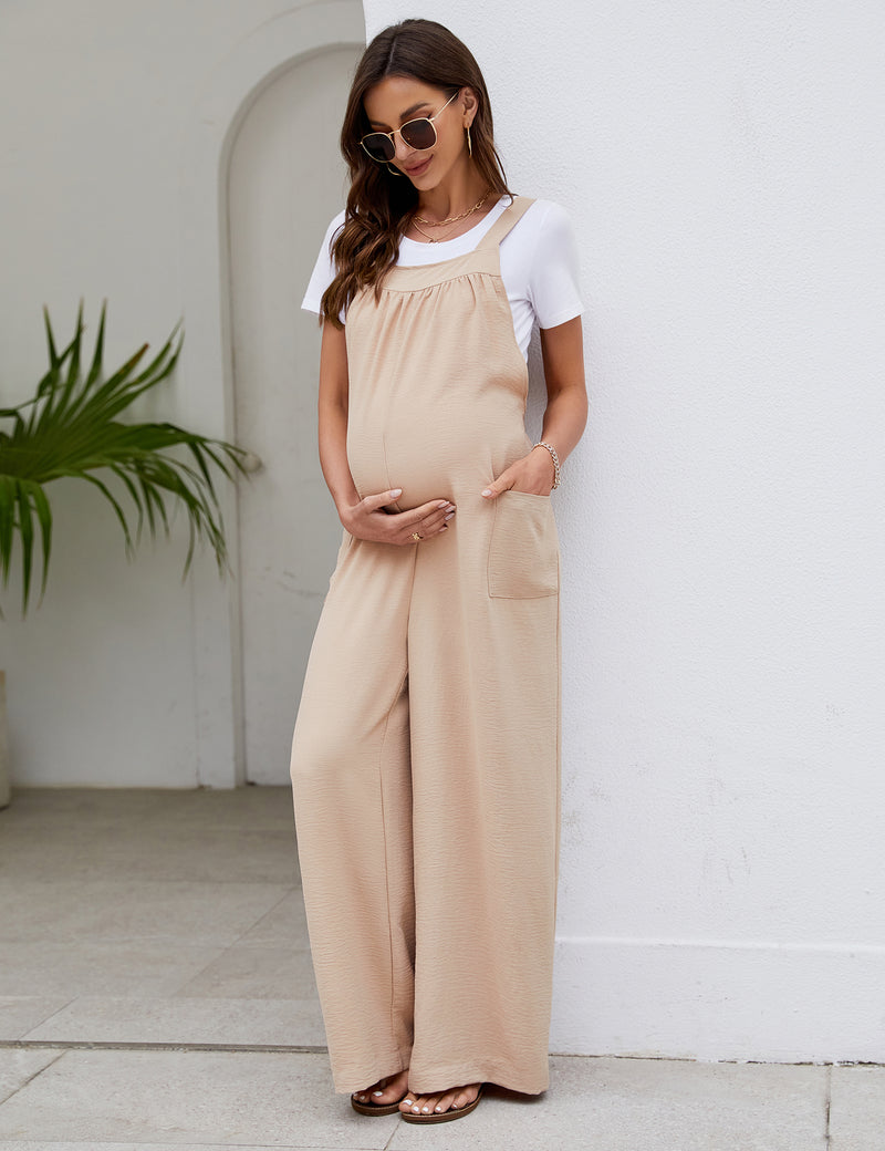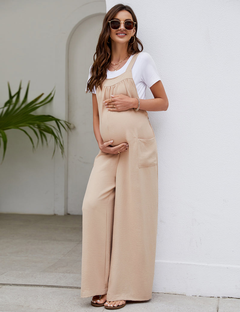 YESFASHION Women's Maternity Casual Loose Jumpsuit Sleeveless Tie Loose Jumpsuit with Pockets Workwear Yellow S