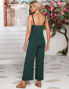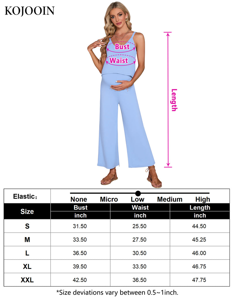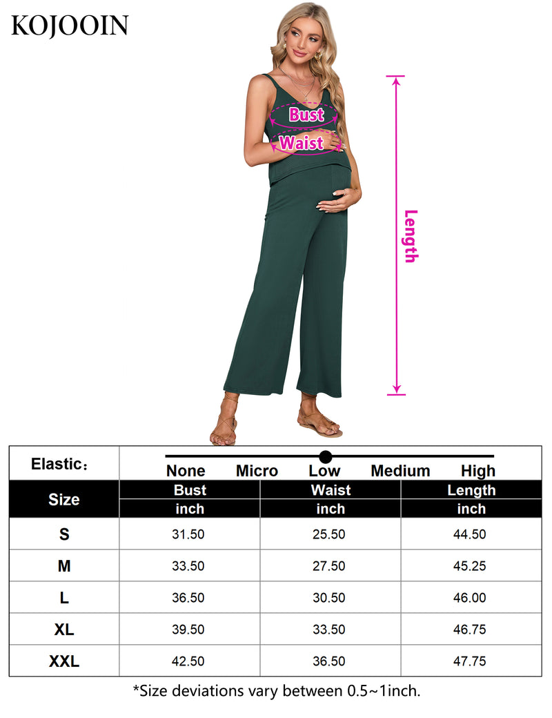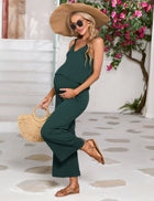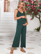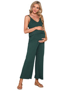 YESFASHION Women's Maternity Jumpsuit Ribbed V-Neck Adjustable Straps Layered Front Wide Legs Dark Green Medium Casual Wear