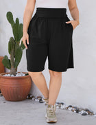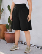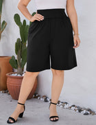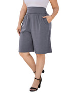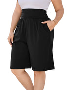 YESFASHION Women's Plus Size High Waist Wide Leg Shorts Casual Palazzo Pants Sweat Shorts Bermuda Shorts with Pockets (Black,4XL)
