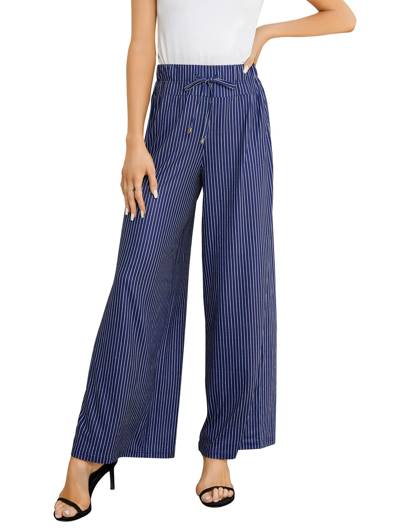 Feature: High waist, wide leg, elastic drawstring waist design, straight leg trousers, loose fit, make you look great for your leisure time.