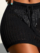 YESFASHION Womens Crochet Cover Up Shorts Hollow Out High Waist Tie Front Knit Swimsuit Beach Skirt Coverups (Black, Medium)