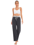 YESFASHION Womens Wide Leg Pants Drawstring Workout Sweat Pants for Women Comfy High Waist Pajama Legging With Pockets Athletic